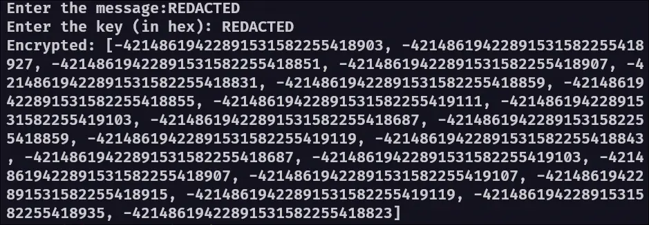 this section of the code likely handles the encryption, as it pushes to the encryptedvector at the end