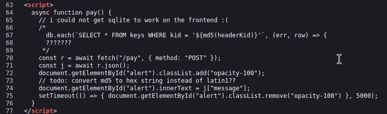 - There is a SQL injection through the kid header with md5, and uses latin1 encoding for the response
