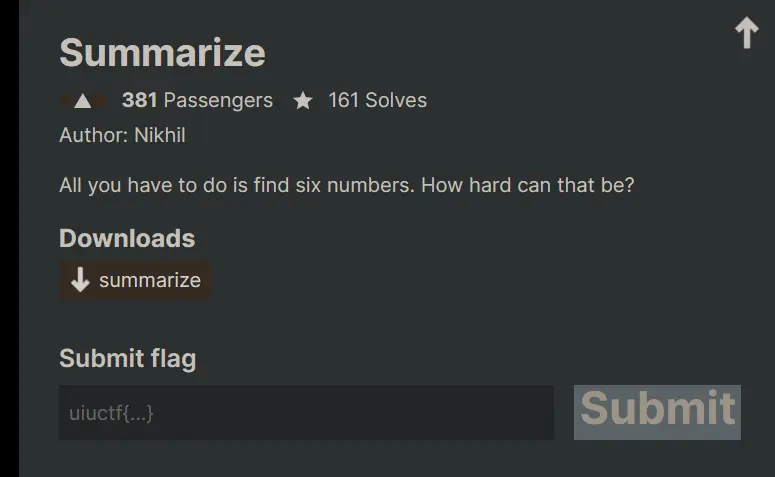 proj = angr.Project('./summarize', load_options={'auto_load_libs': False})