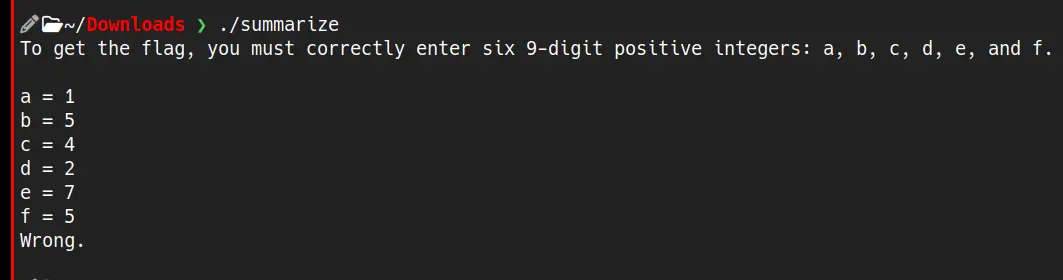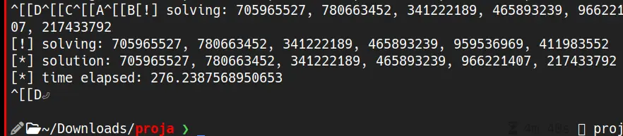 solution = f"[*] solution: {solved_a}, {solved_b}, {solved_c}, {solved_d}, {solved_e}, {solved_f}"