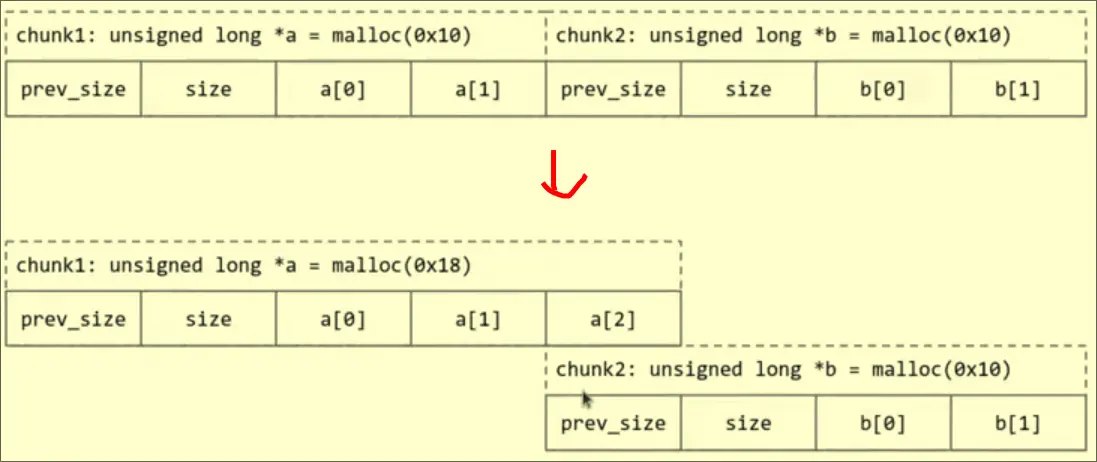 An intended feature with freed Heap Chunk wherein metadata of the previous chunk is used as part of the current chunk.