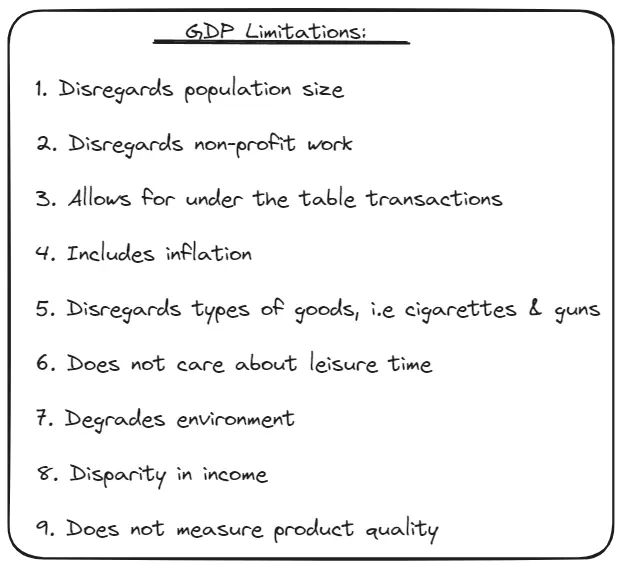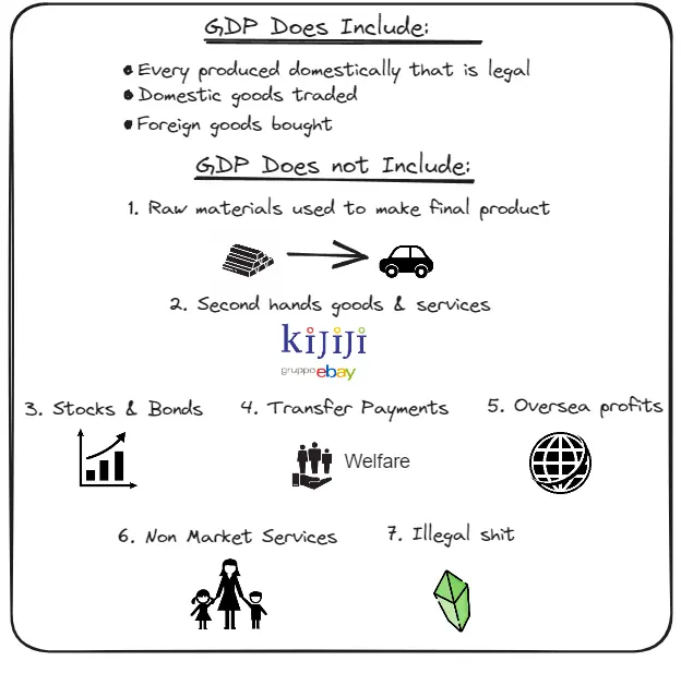 Nominal GDP The final market value of all good and services within one year. Formula Double Counting What GDP Includes Concepts GDP Per Capita Real GDP GDP Growth GDP Limitations GDP World rankings United States China Japan Canada