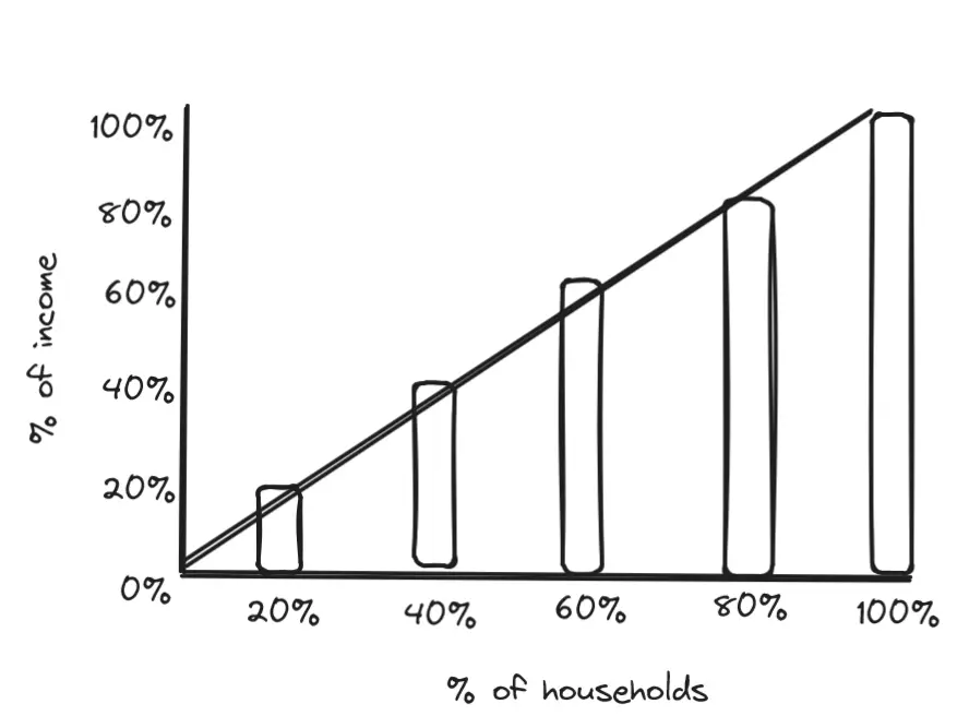 The percentage of the country’s income and the quintile are arranged in a graph like such: