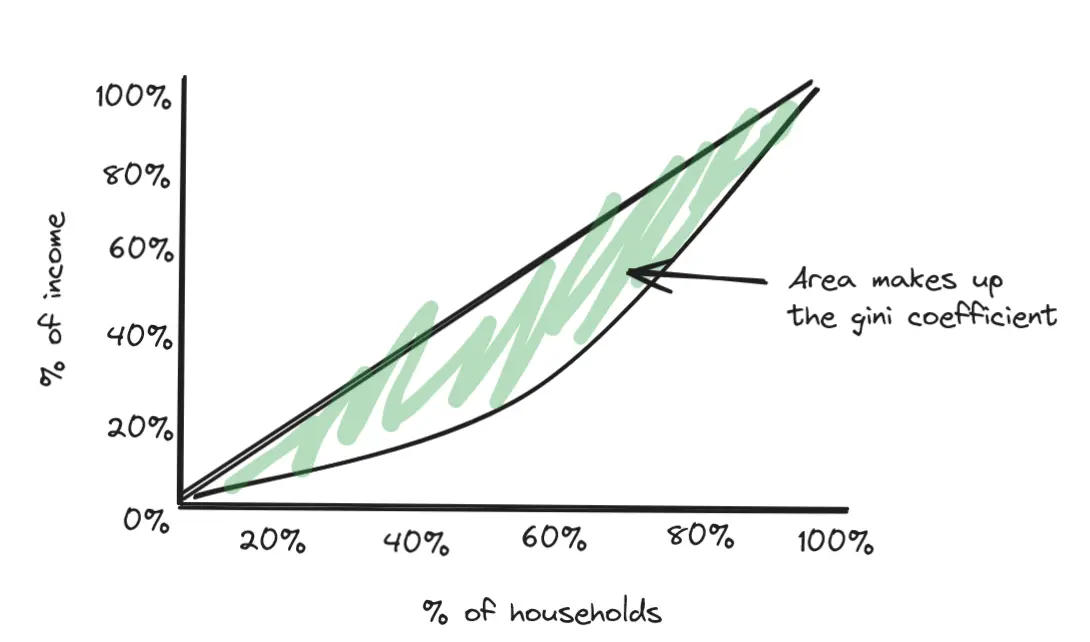 If it does not, then it is compared to the straight line, the area is found. This area is passed to some formula and the Gini Coefficient is computed.