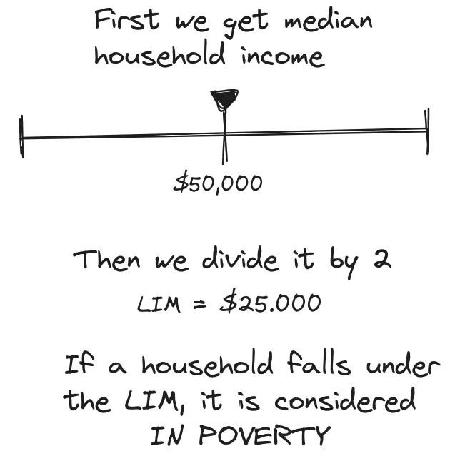 LIM is a fixed percentage of 50% of median adjusted household income (adjusted in the fact that household needs are taken into account and this need increases as household members increase).