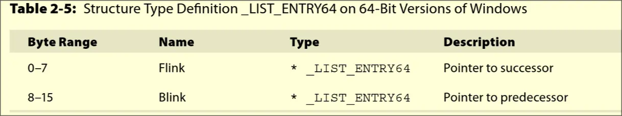 _LIST_ENTRY64(Flink) - Pointer to predecessor’s embedded
