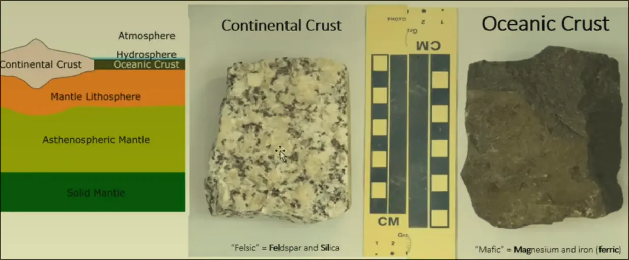 layers of the earths surface caused by the cooling of earths magma. Types Crust varies on density. Oceanic crust is lower density and hotter, continental crust is denser and cooler. Oceanic Crust Continental Crust Concepts Heat Flow