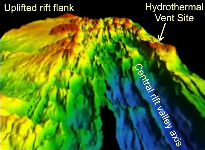 Seawater is heated and expelled back up to the surface when cold water enters the Rift.