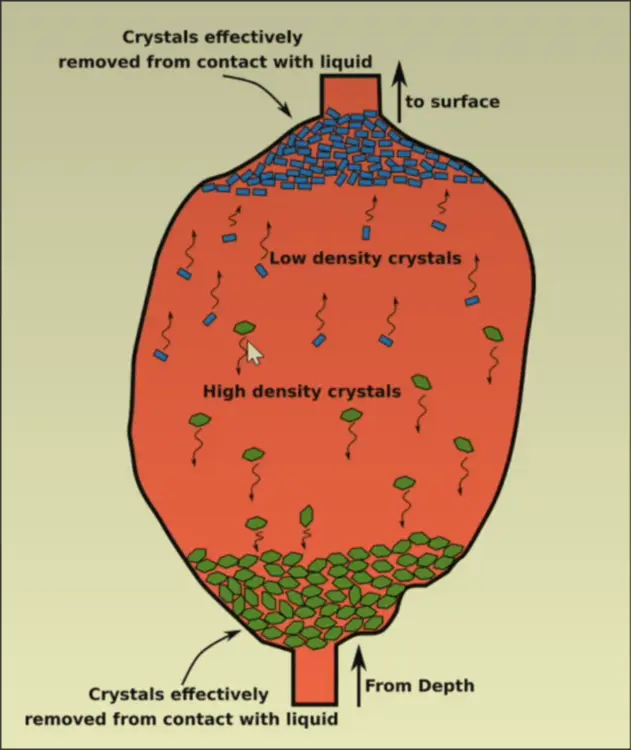 Layered rock that is formed when magma cools very slowly in an axial chamber.