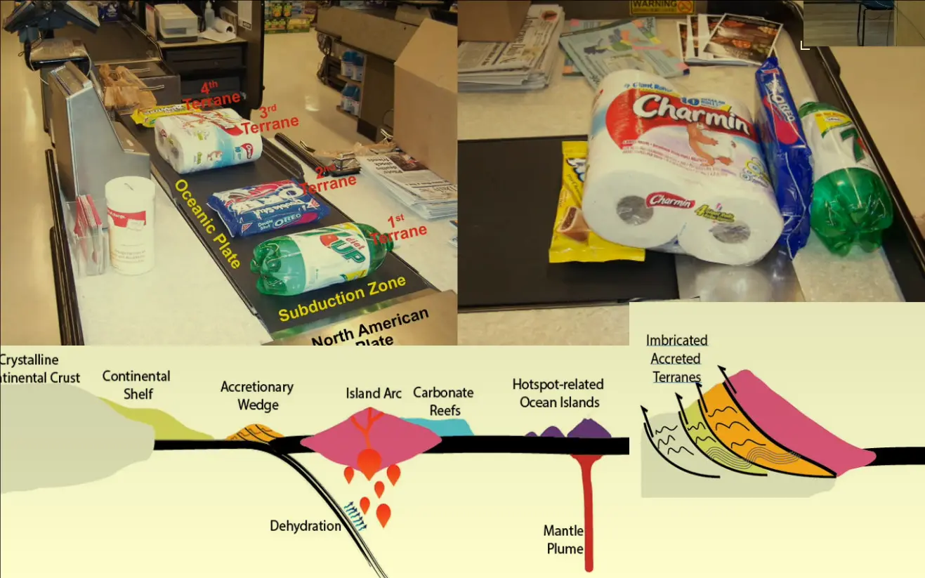 Continents shift and accumulate other sediments. It acretes material onto its edges.