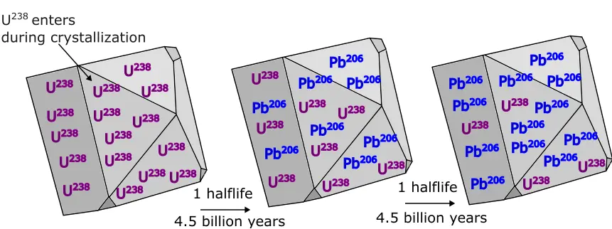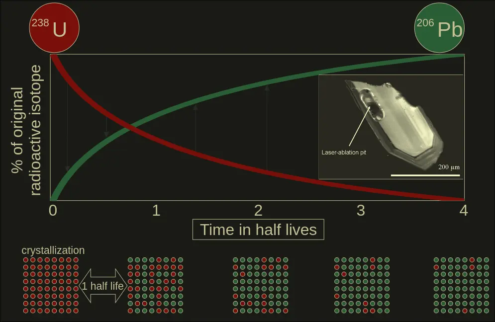 Done by measuring the proportion of Uraniam-238 to Lead-206 to tell how many half-lives have passed.