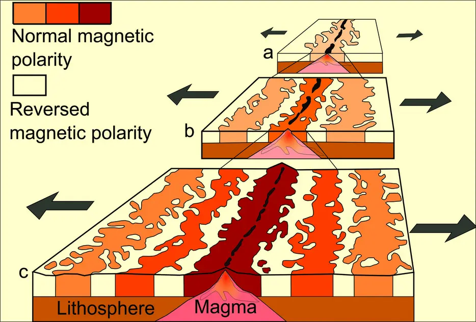The discovery that bastalts had magnetic particles that point to the poles and they differ due to Magnetic Reversal.