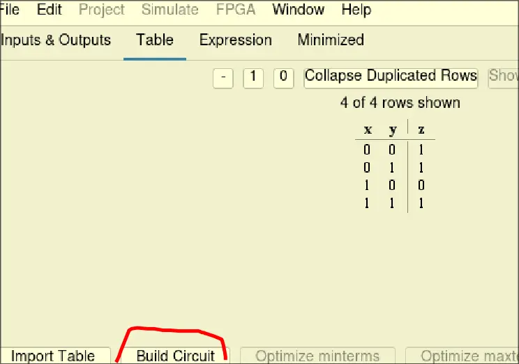 This is a tool to convert truth table → circuit or circuit → truth table. Tool Adding Circuit from Truth Table Add variables Write the truth table, then build circuit