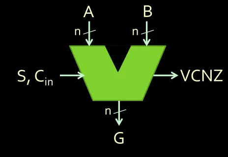 This take: Input function byte S Input carry bit Cin n-bit input A n-bit input B Outputs: Output G Flags (Overflow Flag, Carry Flag, Negative Flag, Zero Flag)