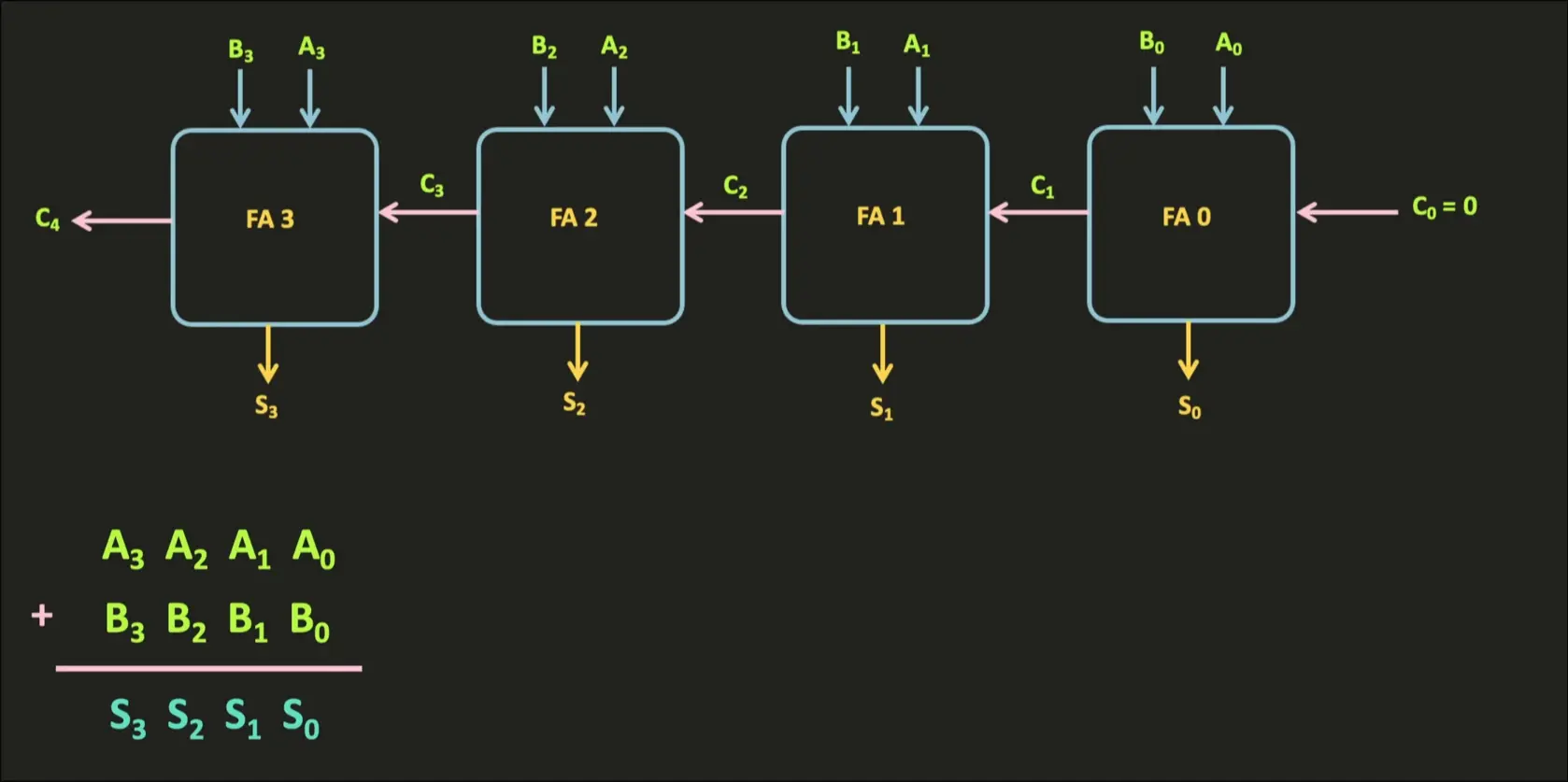 - The full adder for the Least Significant Bit will carry over to the next adder in the chain, continuing on until the last full adder