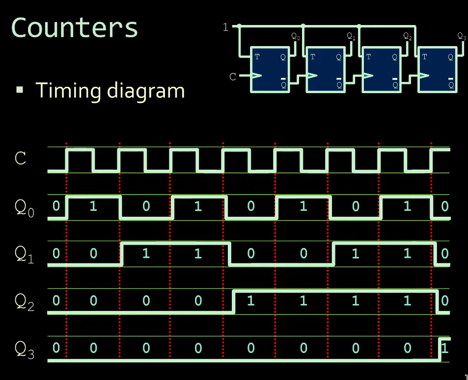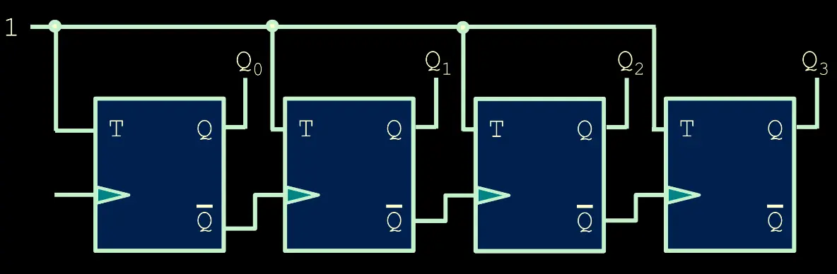 This is a Counter that will only change based off of previous T Flip-Flop gates. It is a Asynchronous Circuit.
