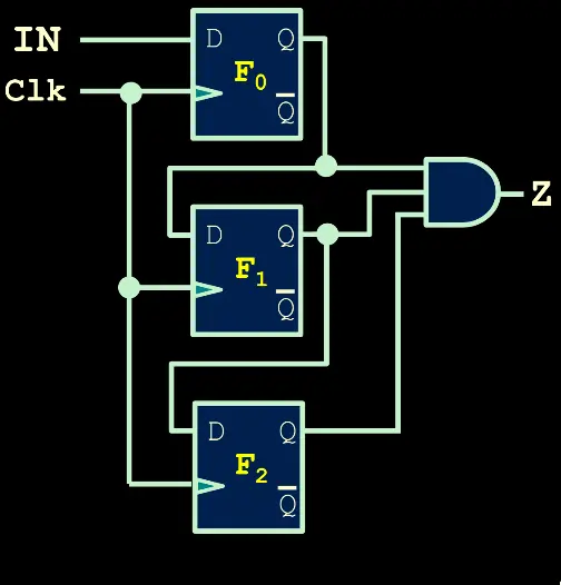 Create a FSM of a circuit that detects 3 Logic High in a row assuming single input and two states