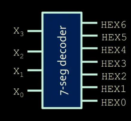 A Decoder that translates a 4-bit binary integer into a arrangement of hex segments in the Seven Segment Display.