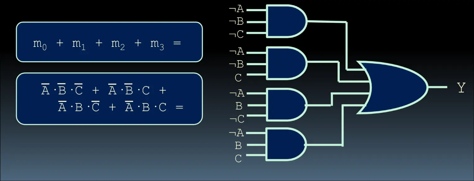 Since each Minterm corresponds to a high output, A K-map can be created with the union of all Minterm expressions.