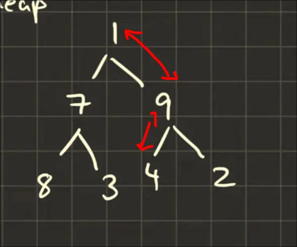 A Heap operation that will bubble-down the top-most element as much as needed to maintain the heap property.