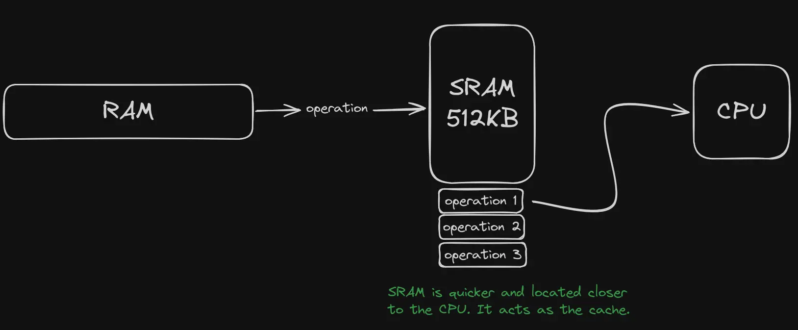 We never want to CPU to be idle, so to reduce wait states, SRAM is introduced.