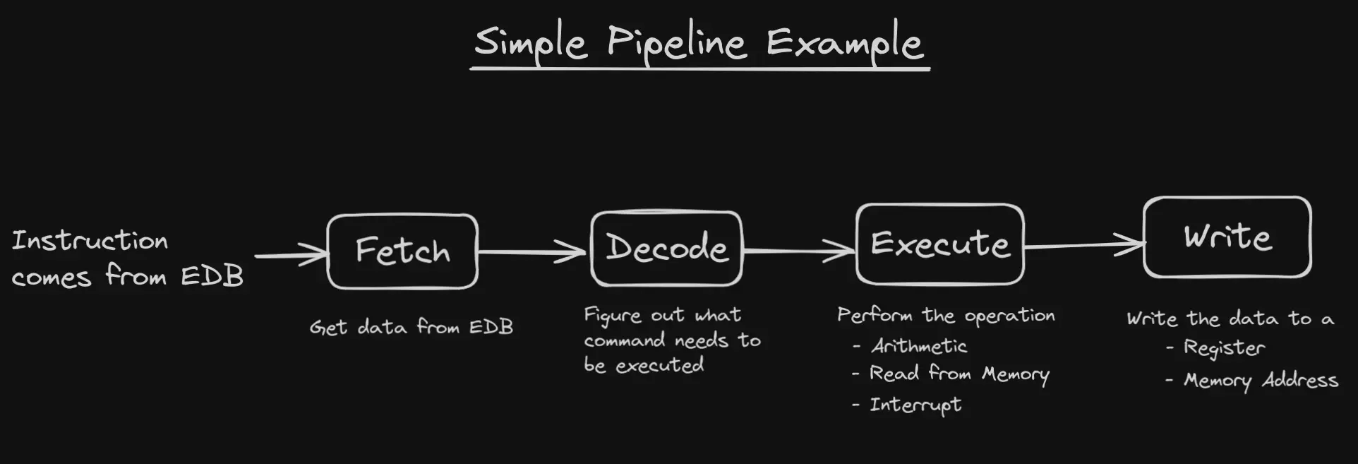Certain commands take more than once clock cycle to complete. When this happens, the pipeline is stalled and must wait for the bottleneck to finish.