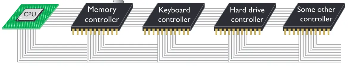 Peripherals must each have a chip designated as the ‘controller’ to communicate with the CPU.
