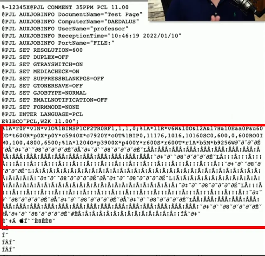 Not a true page description language as instead of being plaintext, it uses a series of commands to represent characters.