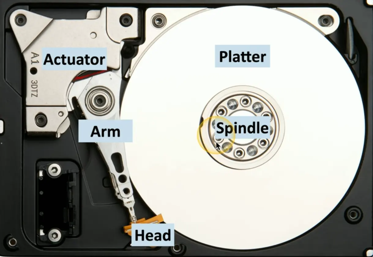 There is are read/write heads which are Transducers controlled by Servo Motors, that operate on these discs.
