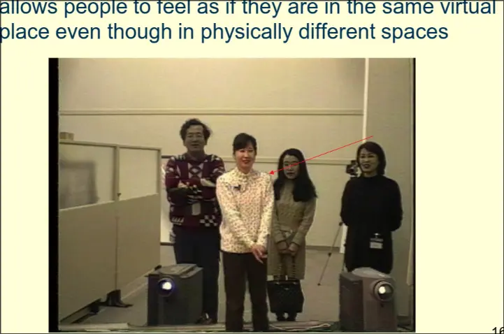 Superimposing people on the same mirror screen to allow virtual people appear in the same space.
