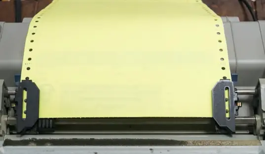 Special paper with holes a the side are fed into clips that will use those holes to drag the paper into the printer.