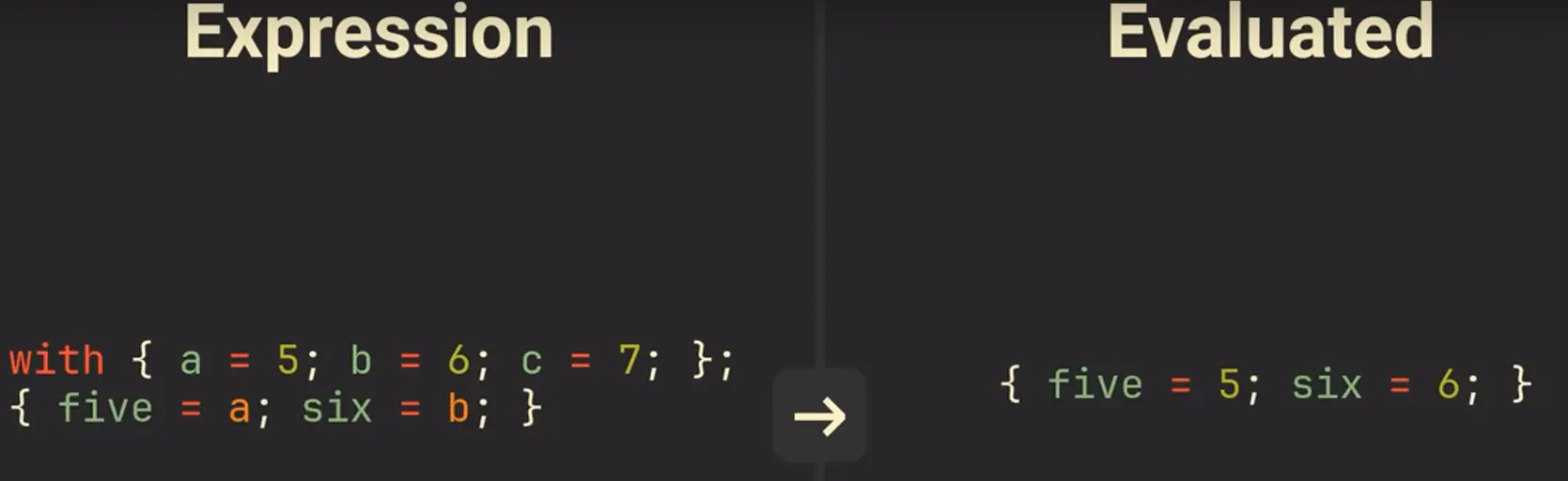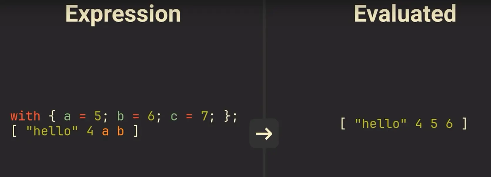 Bringing values from a Nix Attribute Set and evaluating them so that they can be used within other expressions like Nix Lists or simple variable assignments.