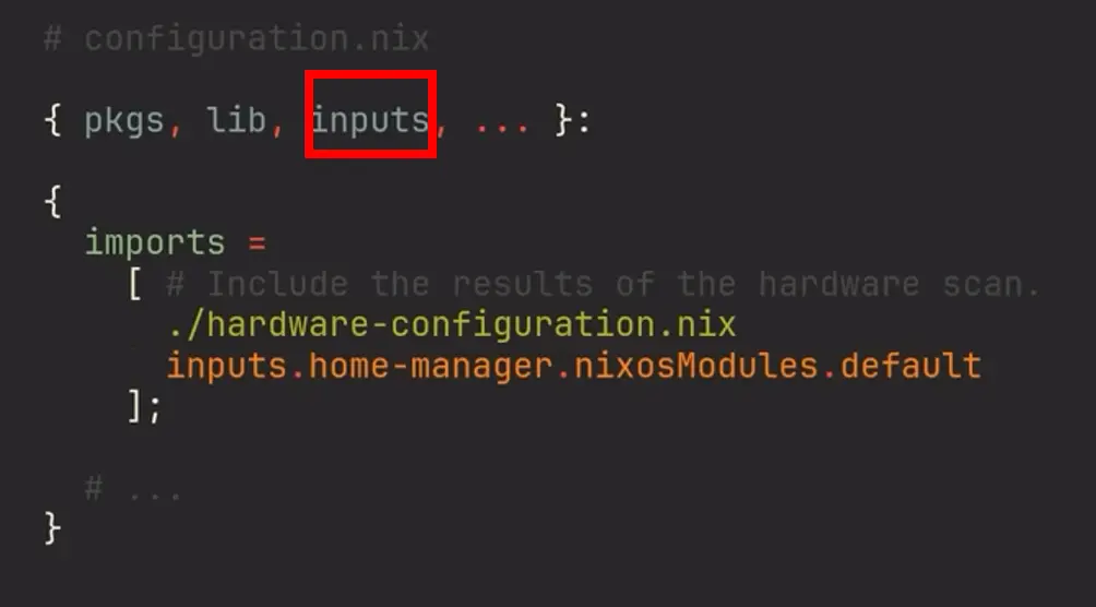 inputsparameter toconfiguration.nixfunction scope