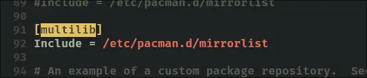 Install .pacman file sudo pacman -U file.pacman Enable Multilib Repository nvim /etc/pacman.conf uncomment Remove Package Lock sudo rm /var/lib/pacman/db.lck Clear Package Cache pacman -Sc