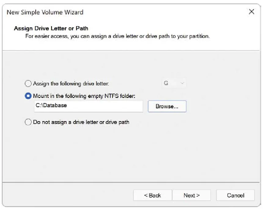 In the Windows Disk Management software, you can mount by making new partition and assigning it to be treated like a folder.