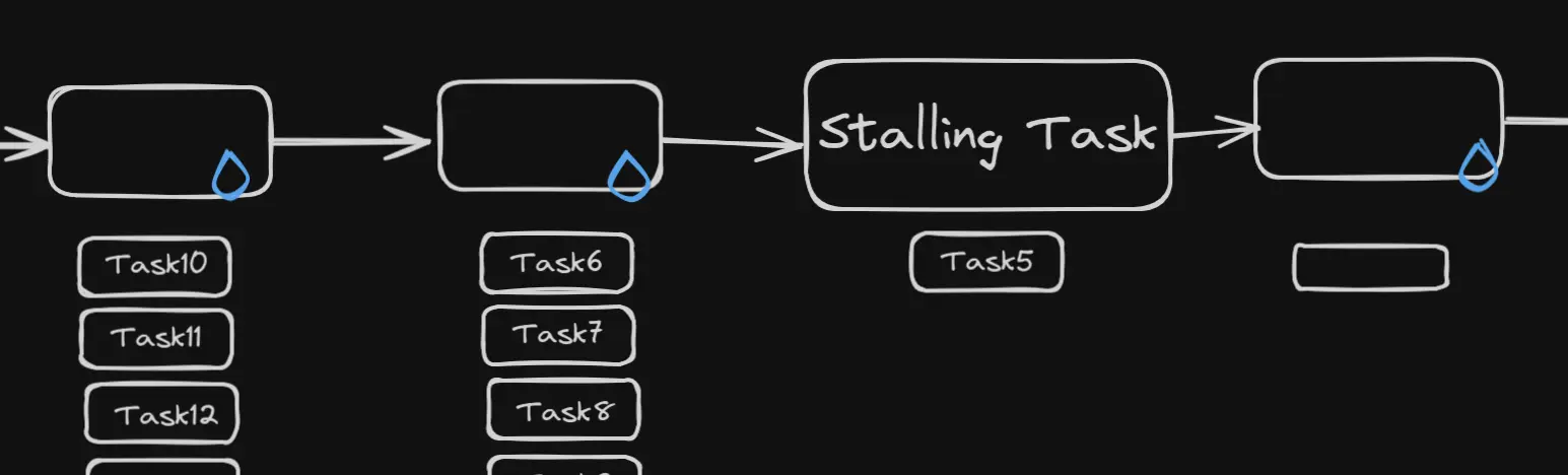 This will create a bottleneck, where prior and subsequent tasks must wait for the current task to finish.