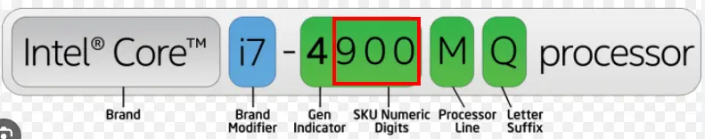 These are usually the last 3 numbers, but for intel 10th series, they are the last 2 numbers.