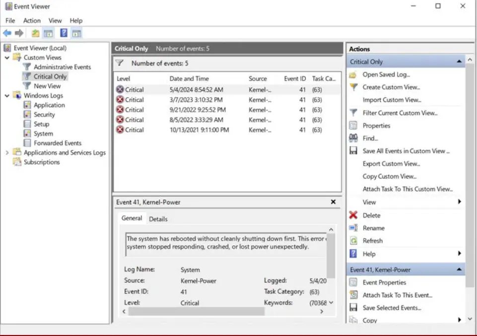 - Critical: Unexpected behaviors like sporadic system shutdowns