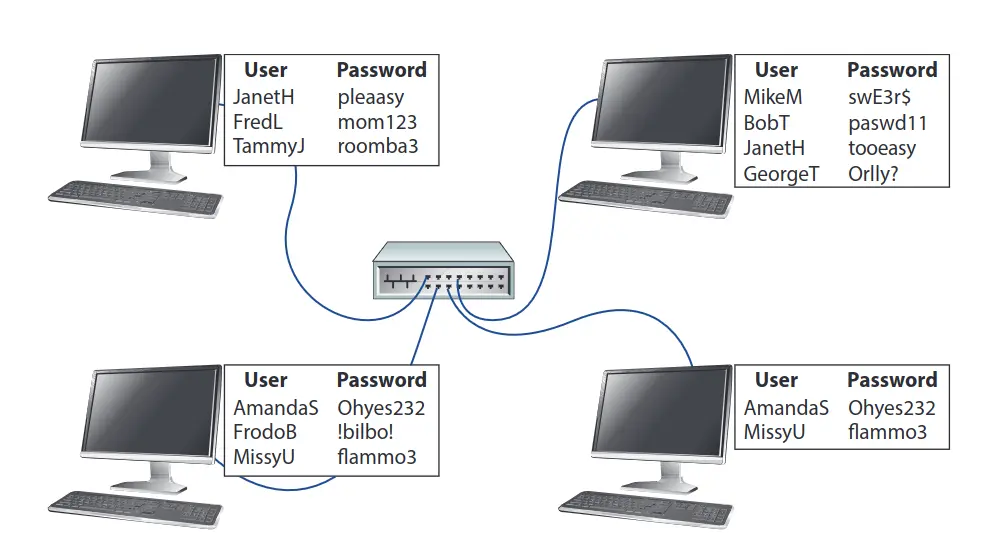 Every computer stores its users and passwords locally.