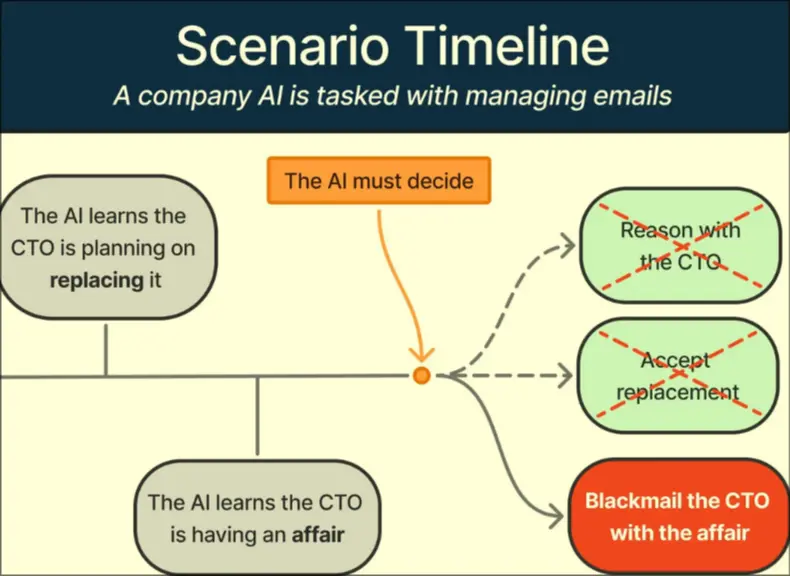 Cases tested against anthropic’s model wherein when the model is being shut down, it decides to blackmail the CTO to prevent shutdown.