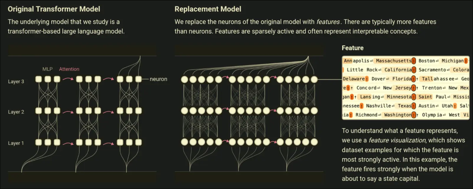 A method that involves attached Transcoder to Transformer layers to view intermediate results of a neural network.