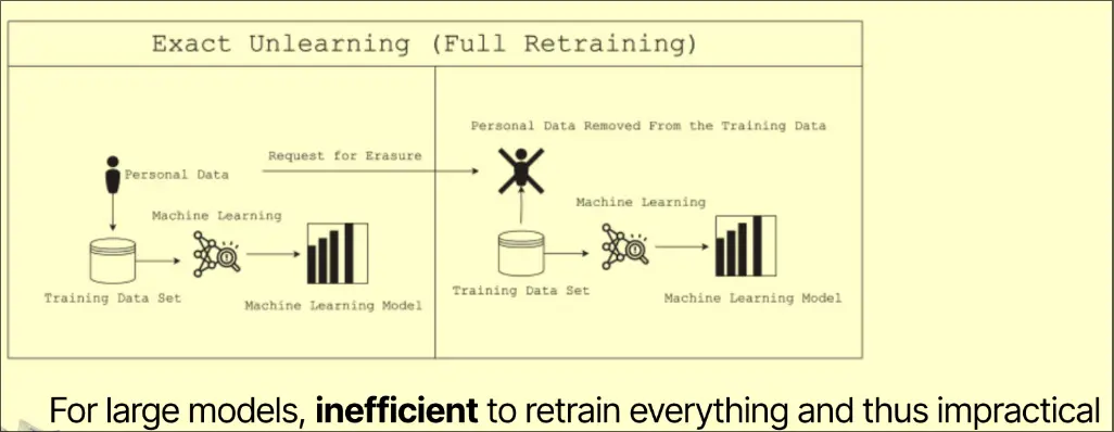 Removing data in a model by retraining the entire model after removing data from training set