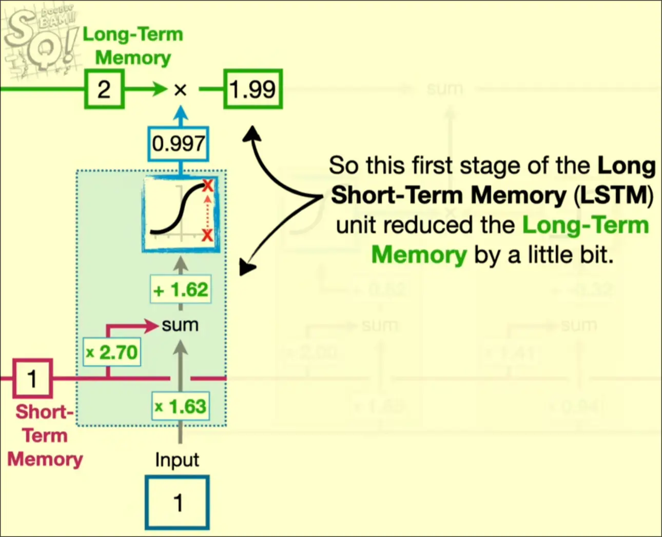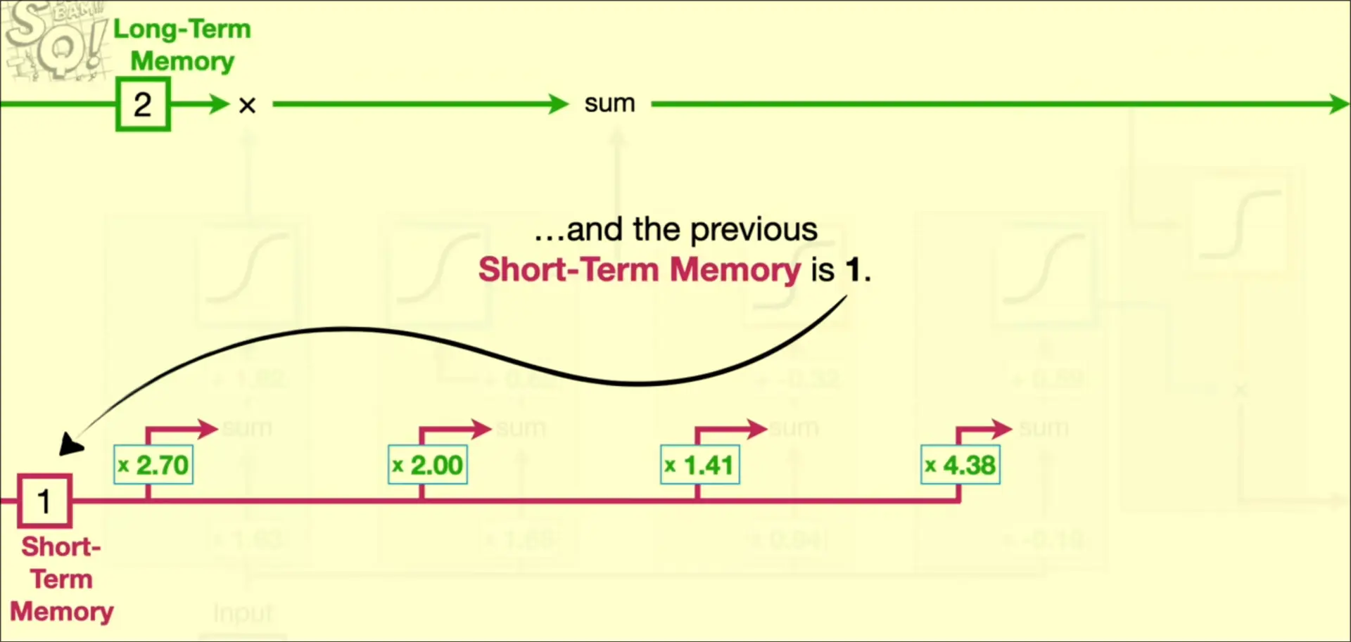 3. Short term memory is multipled by another weight then added to the input’s weighted value