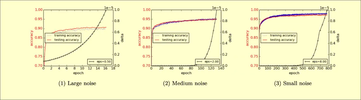 The more privacy/noise you have, the lower the accuracy