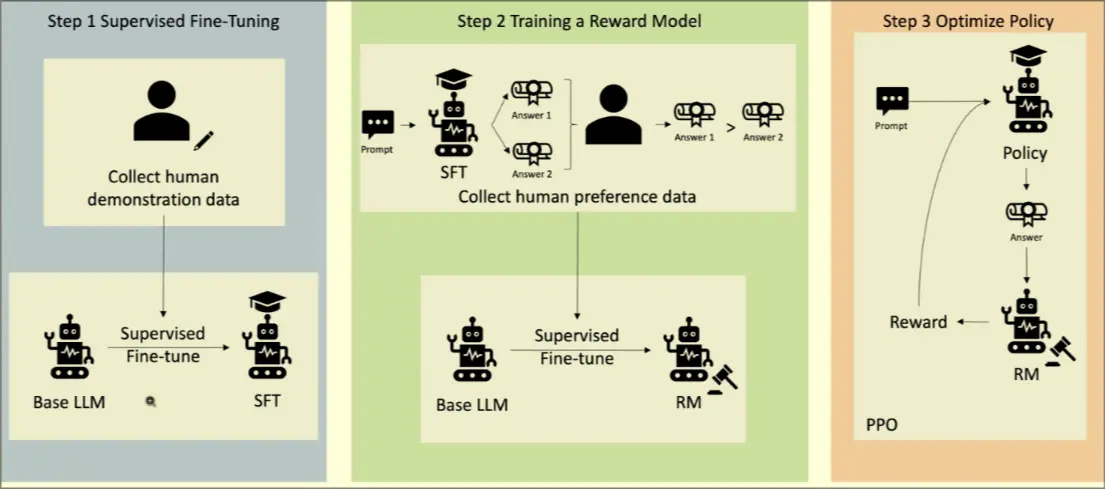- Step 1: Human collected data to describe how the AI should behave. Human demonstrated data is harmful vs harmful data pairs