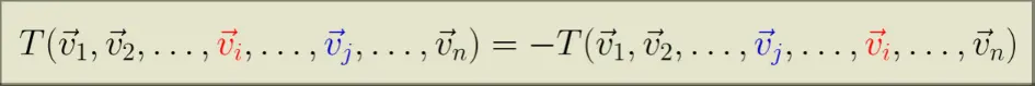 Property An operation ⊞ where: a⊞b=−b⊞a Linear Map A Linear Map is alternative if: Switching the order of two entries changes the sign. Theorems Alternating and Repeated Entries Theorem Alternating and Multilinear Theorem