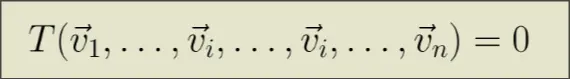 If function T:V→R is alternating and has two identical inputs then it outputs to 0