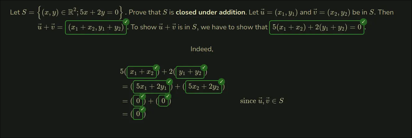A set is closed under addition if the sum of two elements in a set is also a member of the same set.