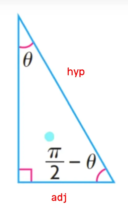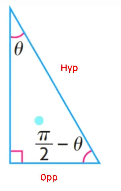 Since we already used a 90 degree angle, we are left with theta. the complementary angle finishes it.