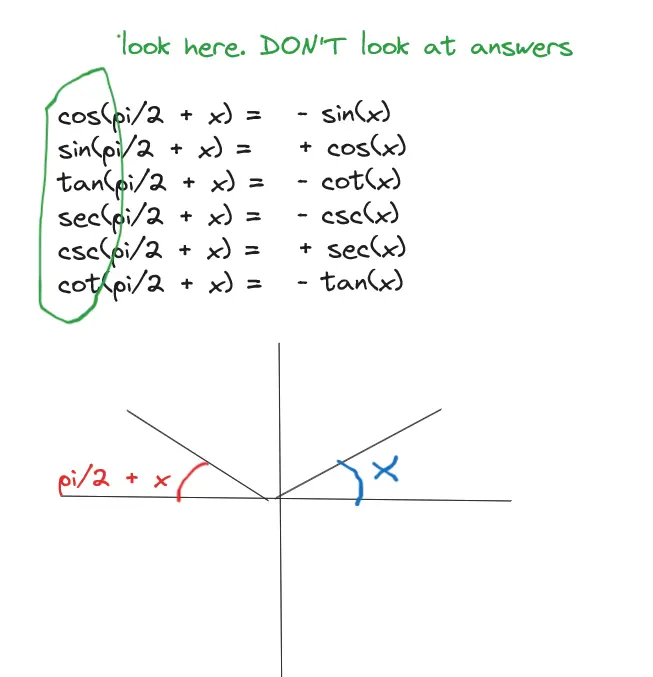 angles that are complements of each other will have the same sine β cosine and same cosine β sine.